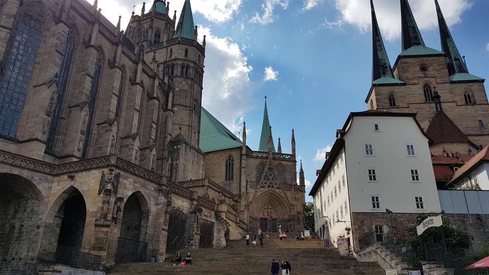Derart gestärkt konnten wir - der Hitze trotzend - noch zum Petersberg hinauf steigen, uns dort oben ein wenig umsehen und die tolle Aussicht auf Erfurt genießen.