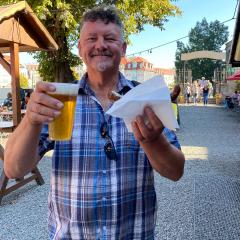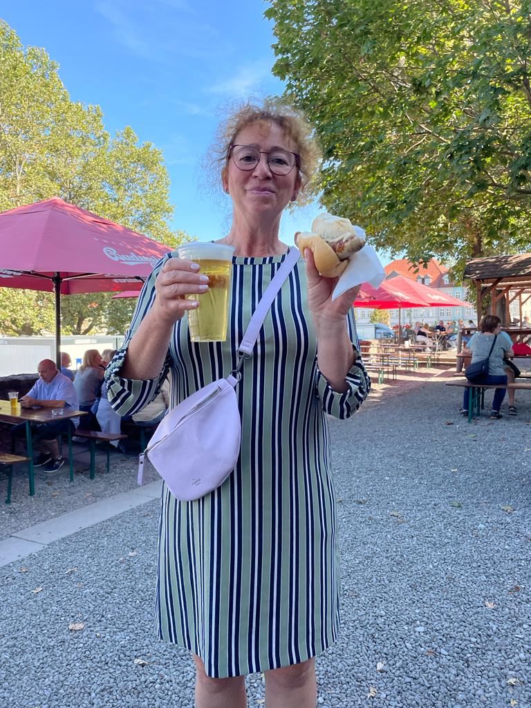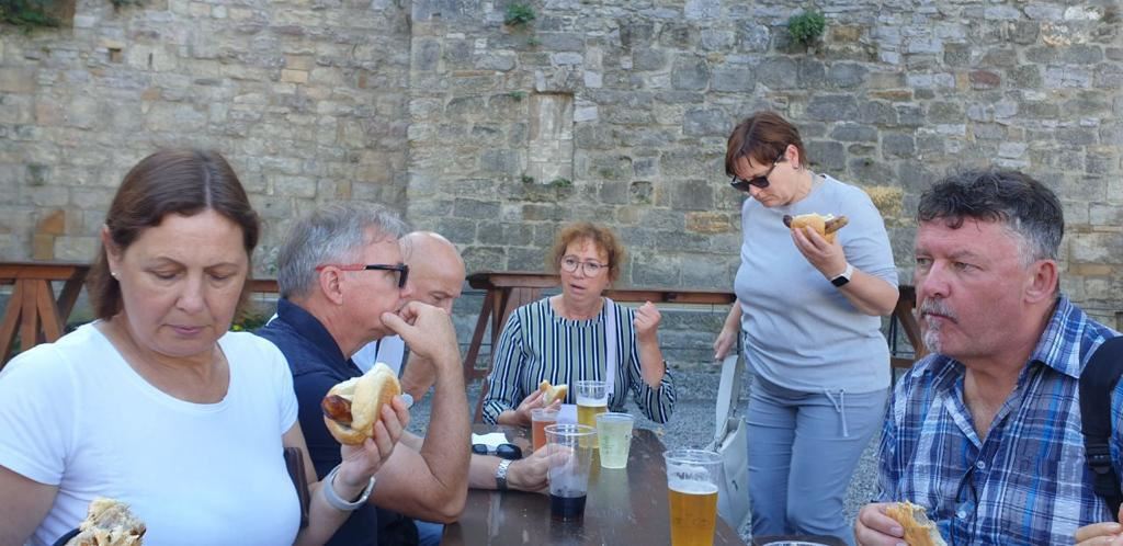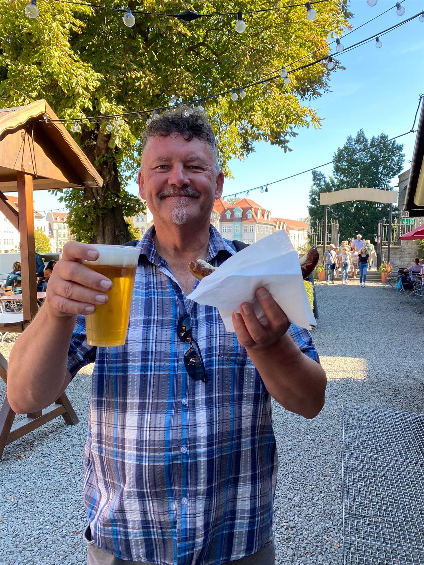 Die Stadtführung endete gegen 15.30 Uhr auf dem Domplatz und nach den 2,5 Stunden machte sich bei uns doch ein ziemliches Hungergefühl breit. Da waren eine echte Thüringer Bratwurst und ein Bierchen dazu jetzt die richtige Lösung.
