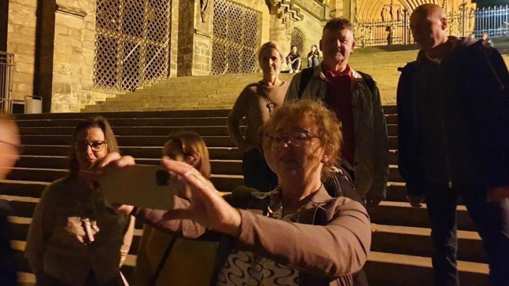 Durch eine kleine Pforte, die wohl um diese Zeit gar nicht mehr hätte offen sein sollen, ging's rauf zum Dom. Dort standen wir sprichwörtlich vor verschlossenen Toren und eine nette Anwohnerin zeigte sich sehr verwundert, wie wir denn überhaupt auf den Innenhof gelangt sind. Tja, mit der MP3 ist eben alles möglich :-)
