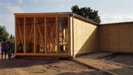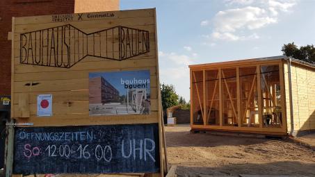 Nach dem Besuch im Bauhaus ging's noch bissel weiter durch Stadt - zunächst an den Laubenganghäusern und einem Kunstprojekt "bauhaus bauen!" von Studenten aus Kassel vorbei ...