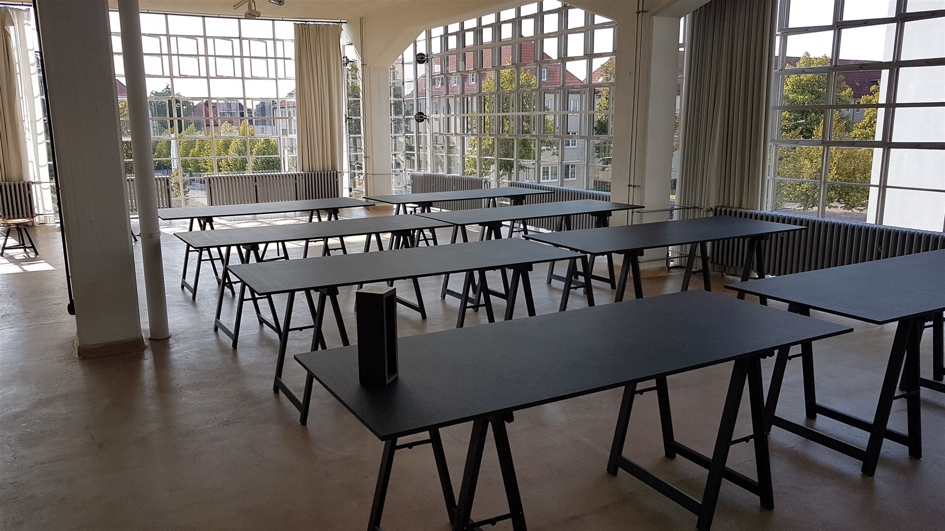 Weiter ging's quasi "um die Ecke" zum Bauhaus. Hier war ganz schön was los - es gab einen Infostand, eine Laden-Ecke mit allerlei "Kunstwerken" und man könnte zahlreiche der Lichtdurchfluteten Räume besichtigen.