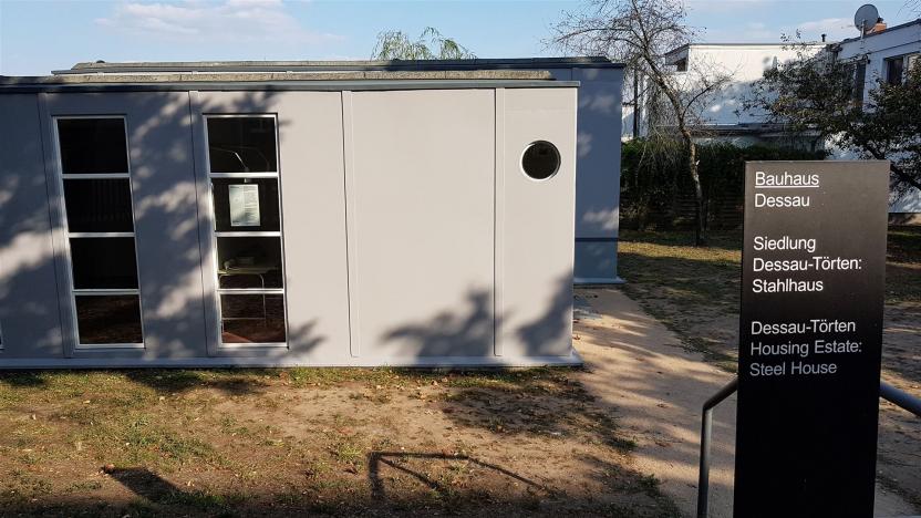 Letzte Station unserer Bauhaus-Tour war die Siedlung Törten mit dem "Stahlhaus" und den Siedlungshäusern in unterschiedlichen Bauhaus-Stilen. Eines wurde soeben saniert - hier konnte man auch mal Paparazzi spielen und hinein fotografieren.