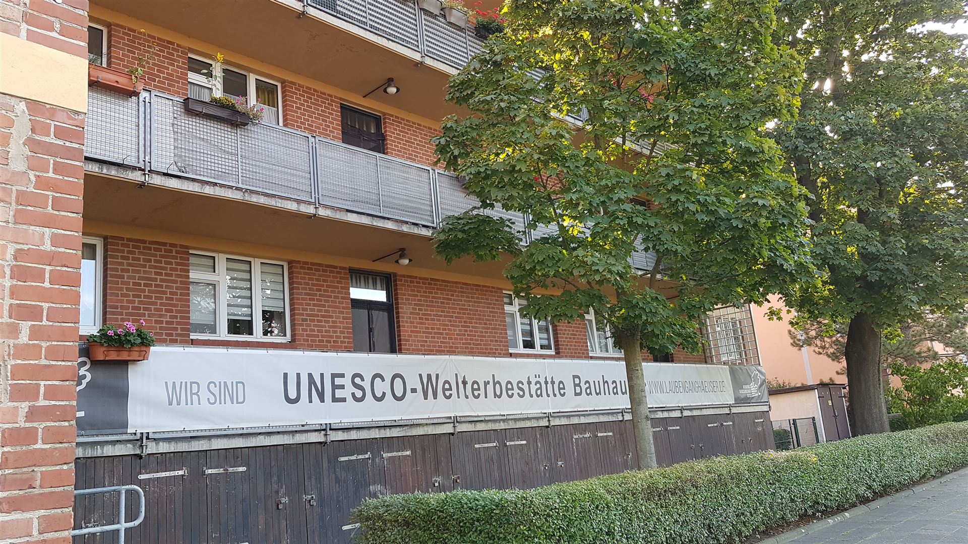 Nach dem Besuch im Bauhaus ging's noch bissel weiter durch Stadt - zunächst an den Laubenganghäusern und einem Kunstprojekt "bauhaus bauen!" von Studenten aus Kassel vorbei ...