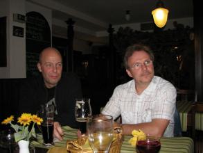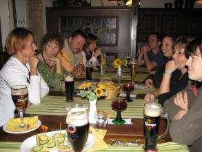 Per Pedes oder Straba ging es dann hinüber zur Trothaer Straße zum Abendbrot in der "Alchimistenklause". Beim gemeinsamen, wirklich leckeren Abendessen war die MP3 dann wieder vollzählig und ein wenig später stieß auch unser "On" zur "Stütze der PH".