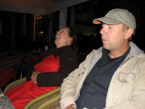 Gegen 23.00 Uhr wieder an der JH angekommen, trennte sich noch eine "Splittergattung" von den anderen, sichtlich ermüdeten MP3er ab, um in der Kleinen Ullrichstraße auf der Veranda einer gemütlichen Kneipe, in wärmende Decken gehüllt über Mauerbau, Wende und andere weltbewegende Themen zu diskutieren....