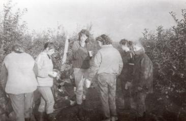 Die Chemiker waren nicht nur im Studium für ihre Strebsamkeit bekannt. Auch im Erntelager lagen sie beim Äpfelpflücken oft in ihren Baumreihen weit vor den Physikern...