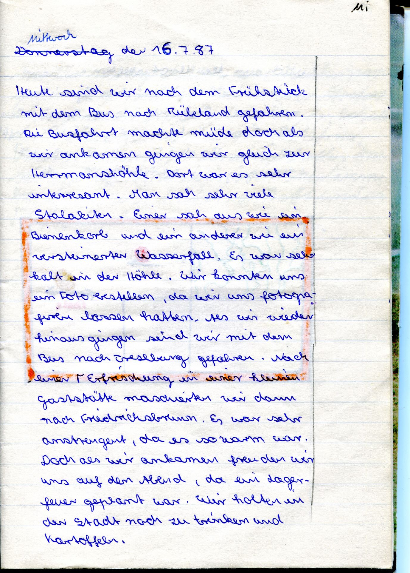 Zum Lager-Appell teilt uns die Leitung mit: "Das ganze Lager geht am Donnerstag wandern." Wir sollen uns früh beizeiten am unteren Lagertor einfinden um dann geschlossen nach Thale zu wandern.