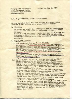 Interessant ist auch die Liste der mitzubringenden Literatur. Es soll tatsächlich Kommilitonen gegeben haben, die mit 6 Bänden Marx-Engels und 6 Bänden Lenin im Gepäck nach Halle angereist sind. Heute lachen wir drüber.