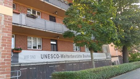 Letzte Station unserer Bauhaus-Tour war die Siedlung Törten mit dem "Stahlhaus" und den Siedlungshäusern in unterschiedlichen Bauhaus-Stilen. Eines wurde soeben saniert - hier konnte man auch mal Paparazzi spielen und hinein fotografieren.